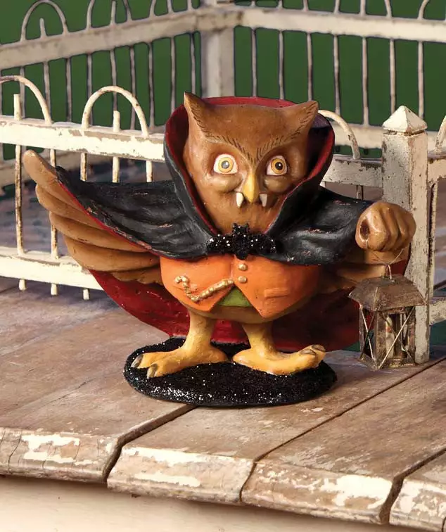 - Hand painted resin owl in vampire costume figurine.