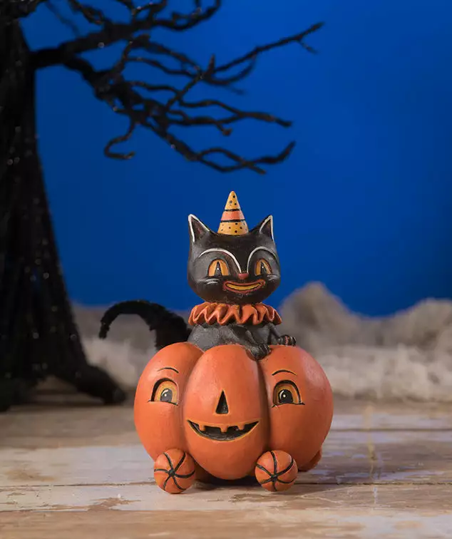 Create a mischevious mood with this entertaining sassy cat in pumpkin designed by artist Johanna Parker.