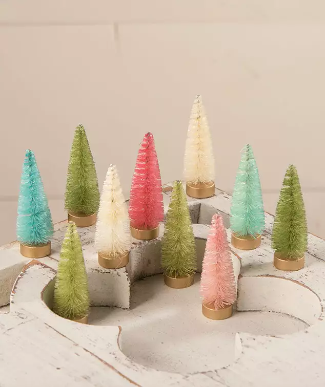 Create a sweet scene with these cute little pastel bottle brush trees.