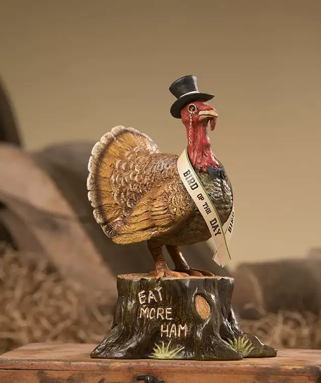 Lend a sense of humor to your Thanksgiving celebration with this quirky Bird of the Day figurine. ” Eat More Ham”