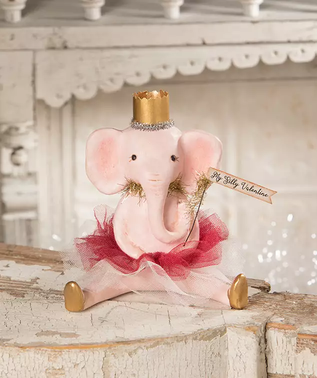 My Silly Valentine Pink Elephant will melt your heart with her pink tutu, crown, and My Silly Valentine sign.