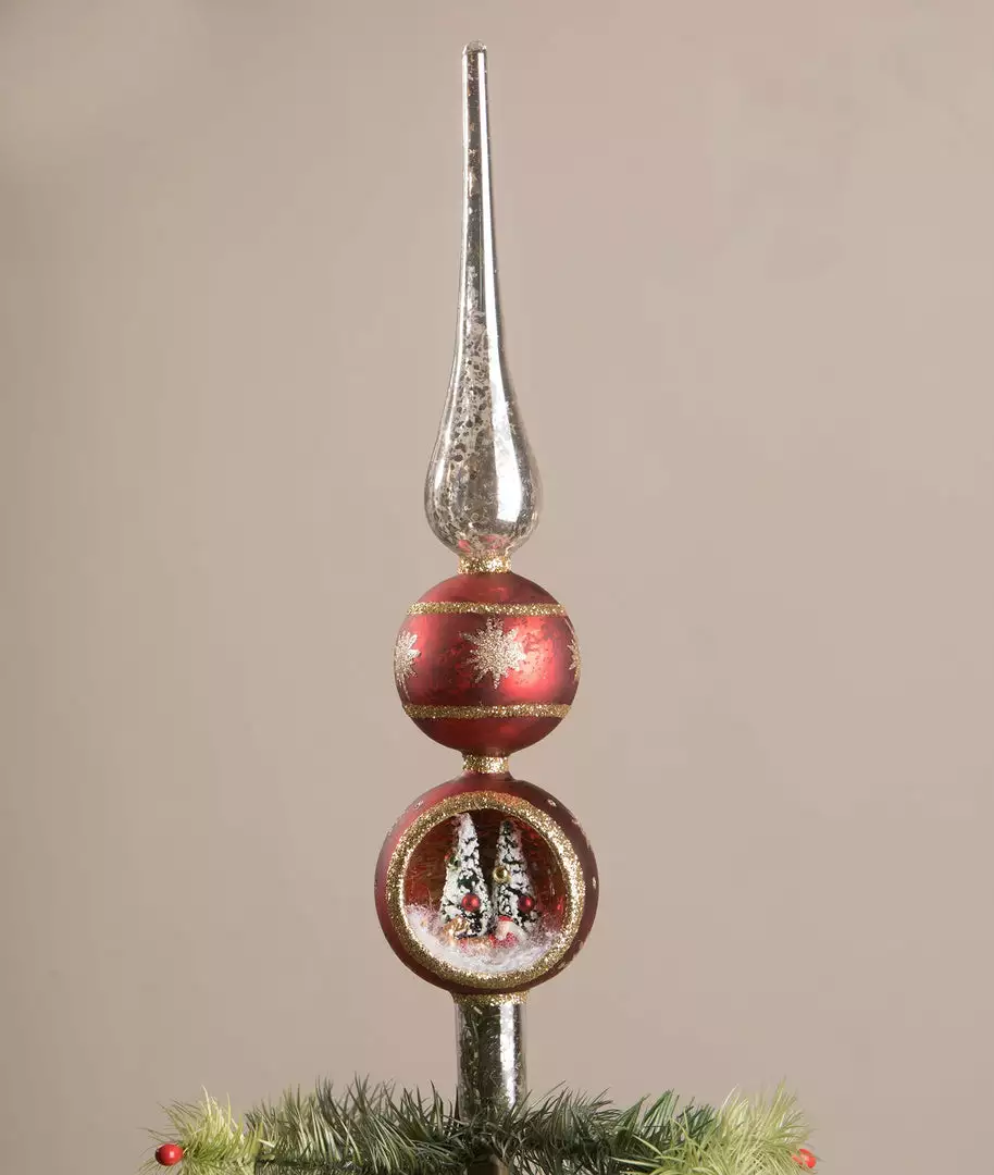- Mercury-glass, glitter, resin, bottle-brush trees