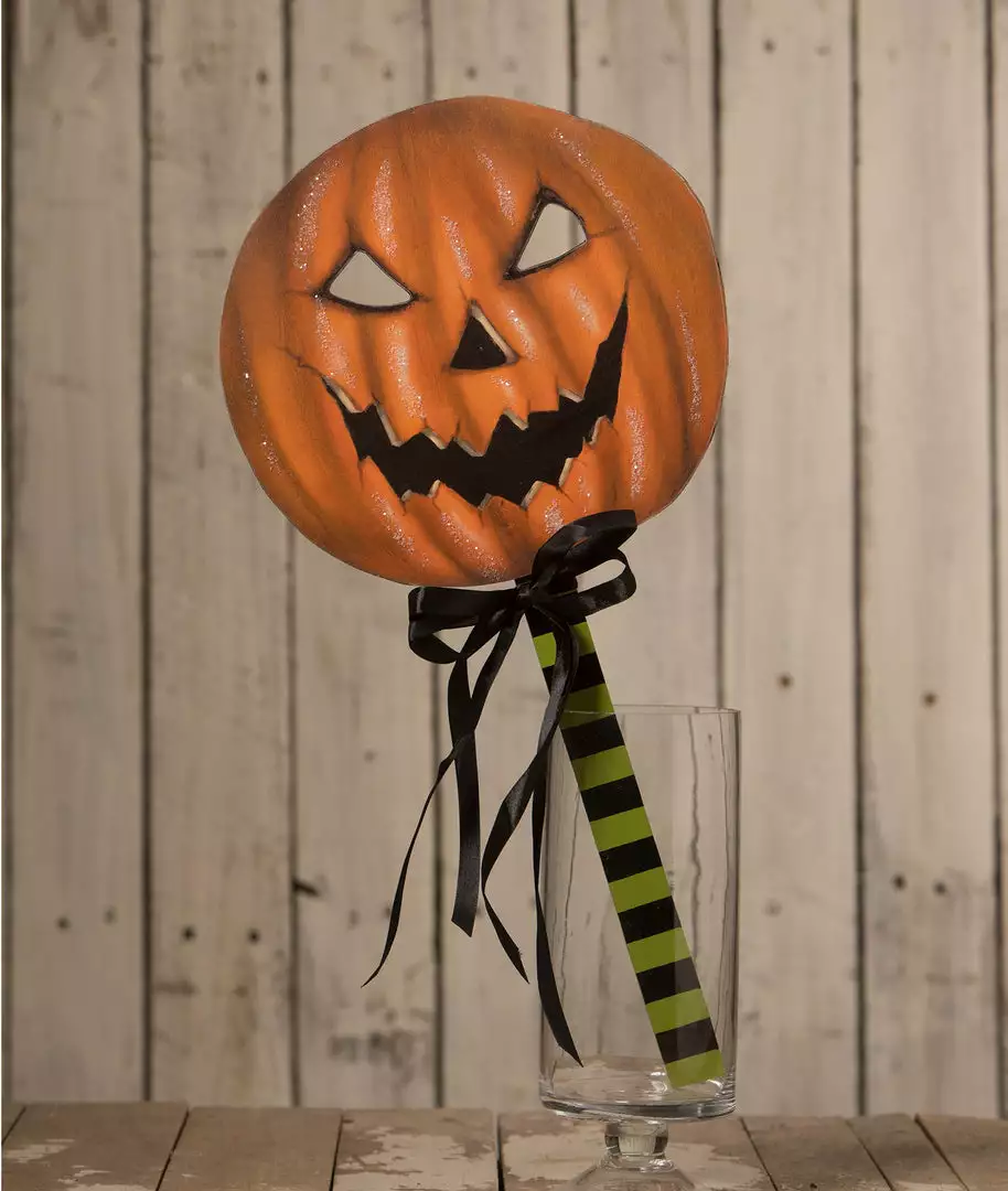 For a hair-raising Halloween effect, arrange Jack O’ Lantern, Scaredy Cat, and Skeleton Masks in a vase, bucket, or urn.