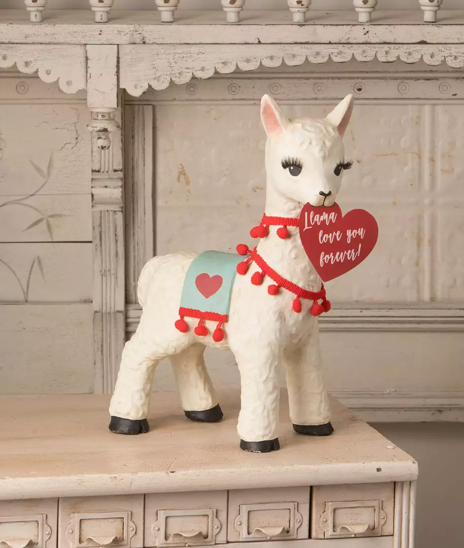 Give your Valentine decor an playful feel with this cute Valentine Llama made from paper mache..