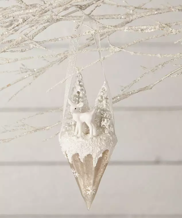 Trim your tree with delight with this winter wonderland scene with deer.