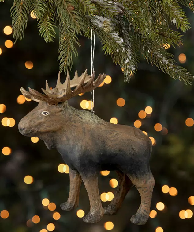 Bring nature to your holiday decorating with this hand-painted paper mache Moose ornament.