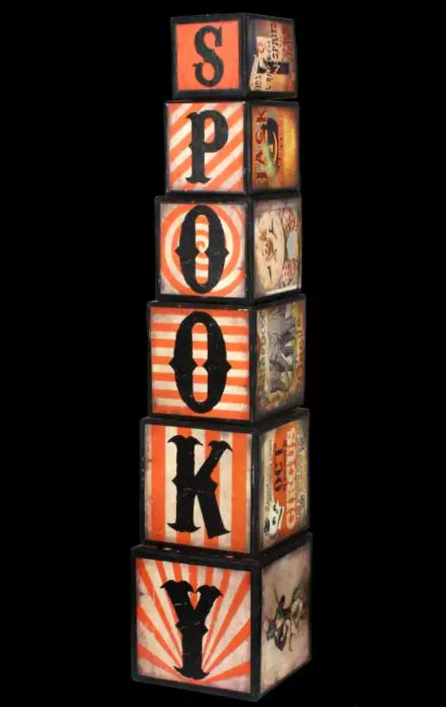 Stack up spooky fun with these quirky vintage-inspired Halloween nesting blocks with circus graphics.