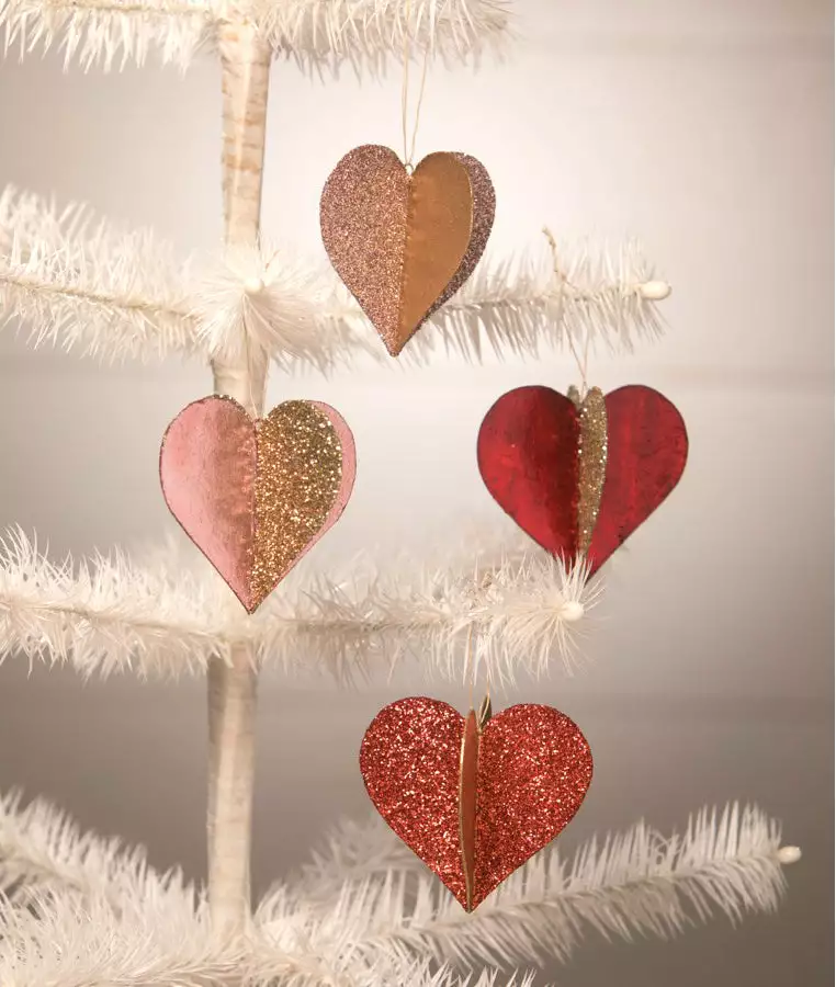 Three dimensional metallic foil heart ornaments with pink, red, and gold glitter will make your Valentine’s Day sparkle. Decorate a Valentine’s Day tree, create a tabletop centerpiece bursting with love or even embellish Valentine’s Day gifts for the perfect finishing touch!