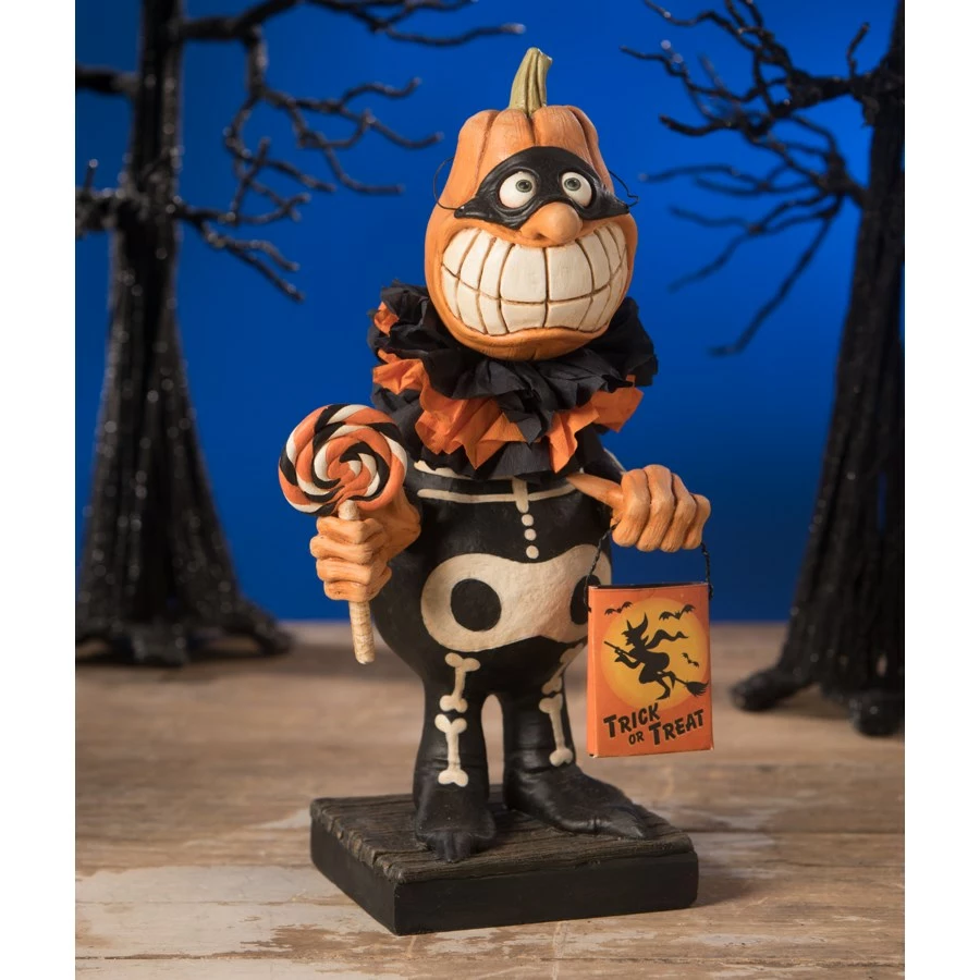 Your Halloween will be Hilarious in the company of Trick or Treat Pumpkin Head. His big toothy grin will give the ghouls and goblins a laugh.
