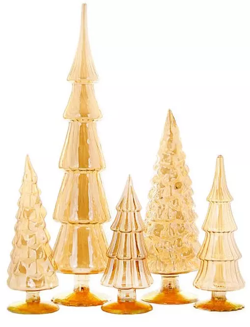 Give your holiday decorating designer style with these stylish Amber Candy Glass Trees in varying hues, shapes and sizes.