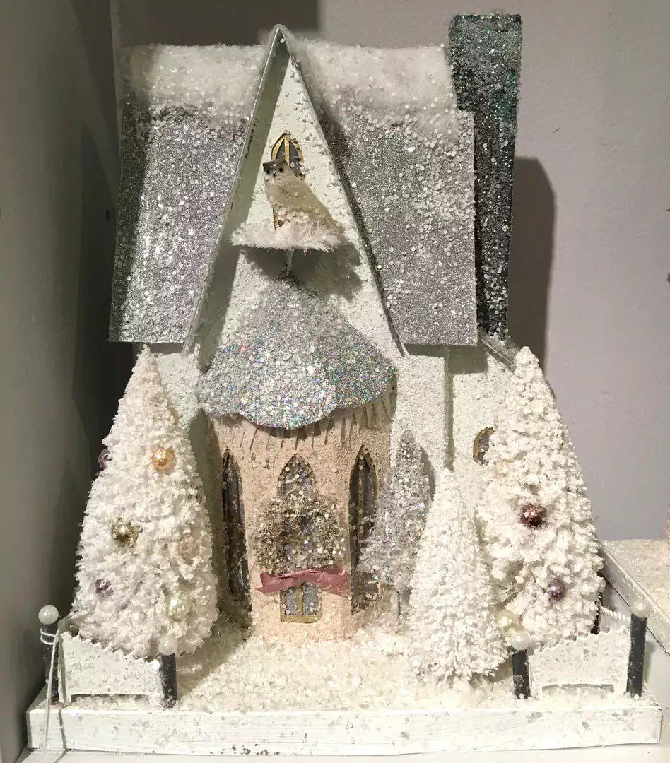 Create a festive Christmas scene with this lovely Woodland Forest Cottage Putz House.