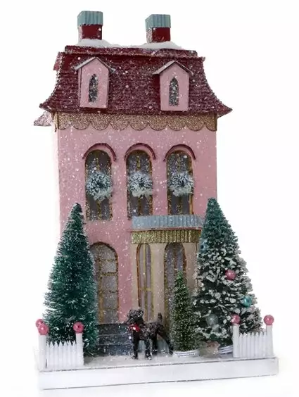 Create a pretty Christmas display with this stylish Pink Chateau Putz House.