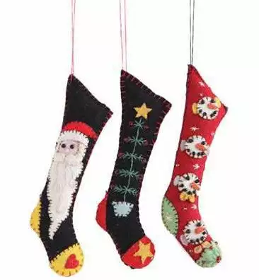 Give your Christmas tree homespun appeal with these hand-embroidered Felt Christmas Stocking Ornaments.