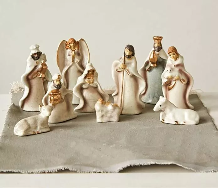 Bring the joy of the season to your Christmas decorations with this vintage-inspired Mini Pastel Nativity set.