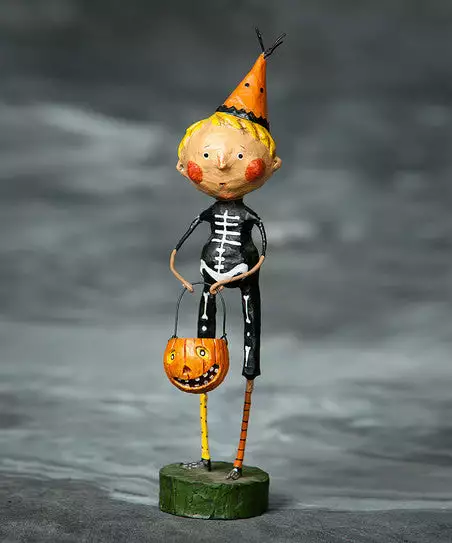 Meet Funny bones at the party, he’s full of tricks, pranks, jokes and mischief. This blonde haired boy has on a silly skeleton costume and orange party hat. His tall skinny legs adorned with mismatch socks carrying a pumpkin bucket. He is sure to put a smile on your face.