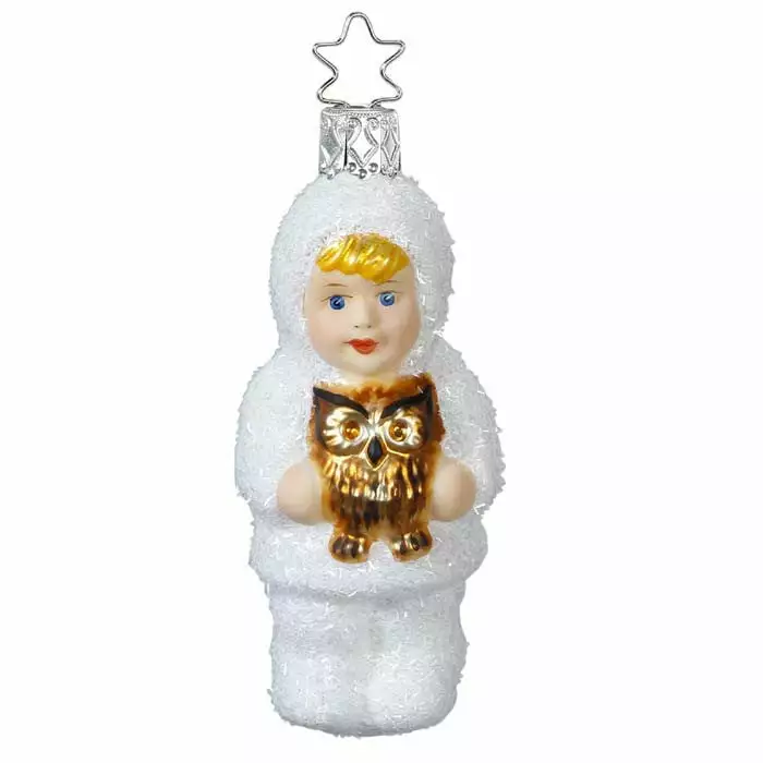 A child holds an owl. A special ornament, hand blown and painted in northern Bavaria, Germany.