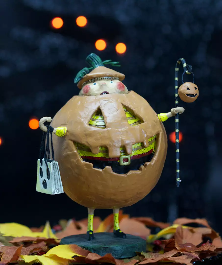 Jack Squash goes out trick or treating as himself, a pumpkin jack-o-lantern. With a ghost treat bag in hand and jazzy pumpkin lantern.
