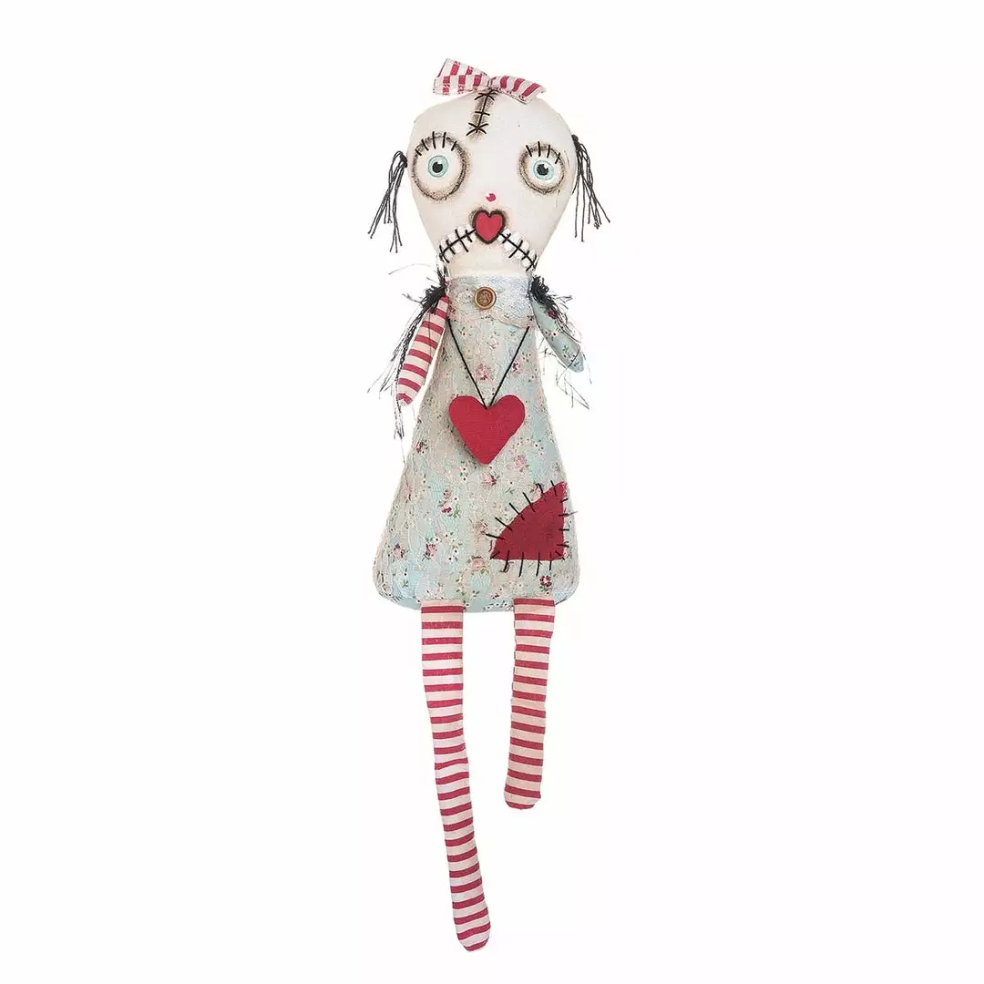 Piroulina has a heart of gold. Cute as a button with a monster story untold. In her flower dress and heart necklace.