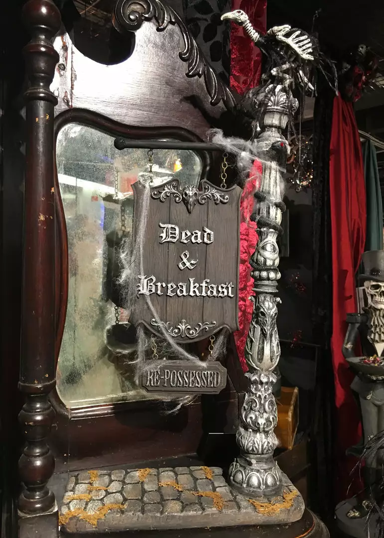 Let the ghouls and goblins know your open for business with this Dead and Breakfast Sign.