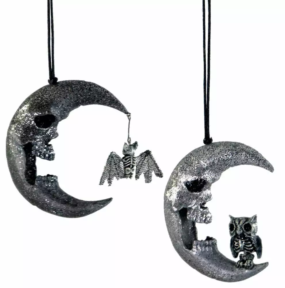 - Set of two assorted Skull Moon Ornaments.