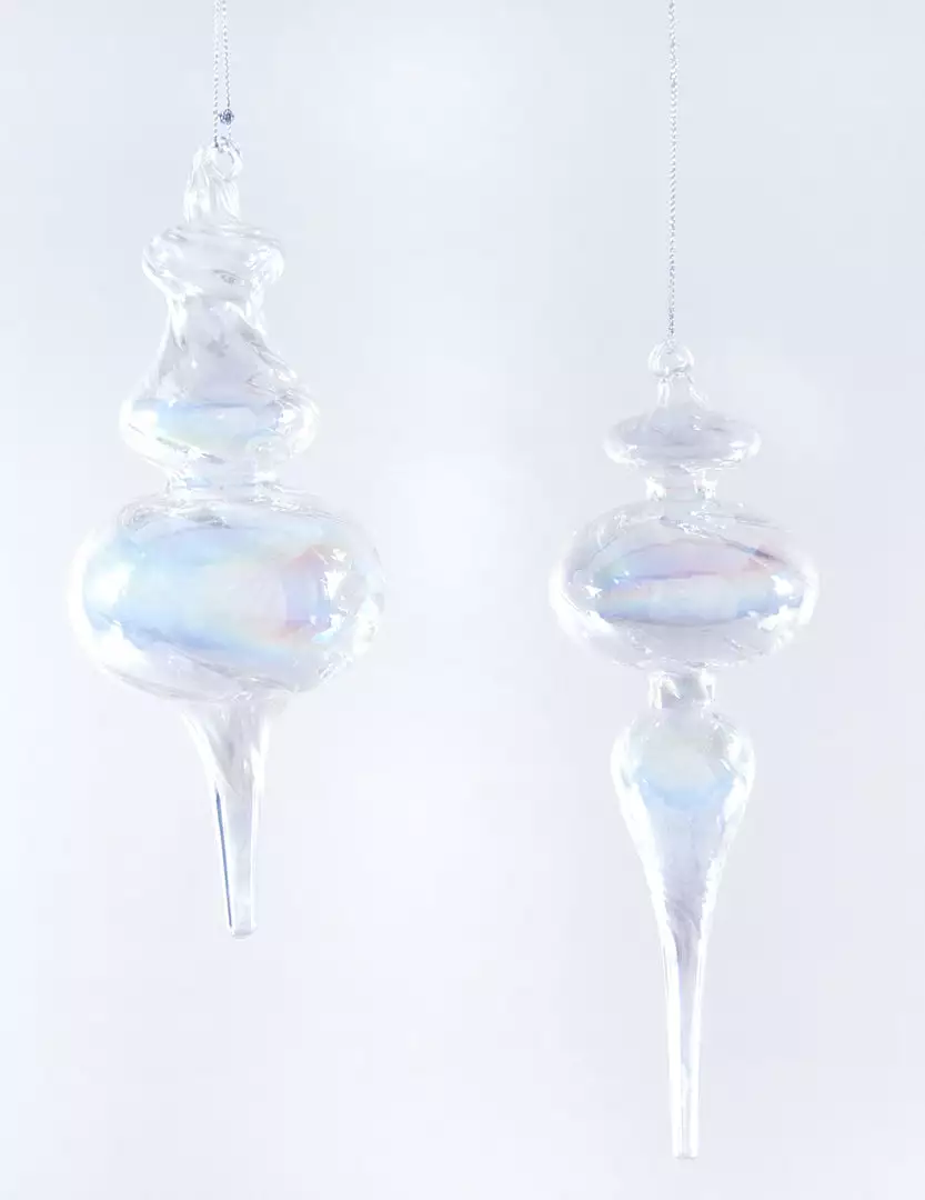 Swirl Glass Three Layer Finial Ornaments with feathers.
