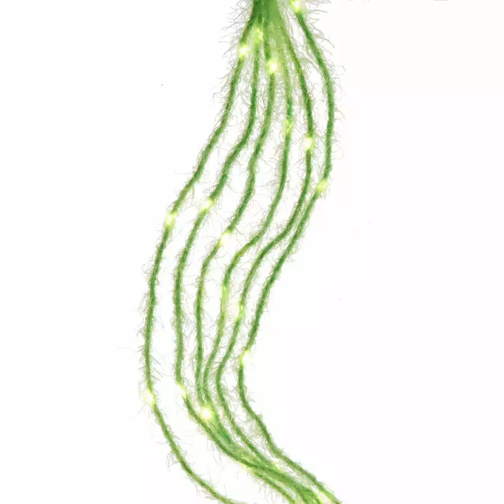- White LED lights on green fuzzy strands