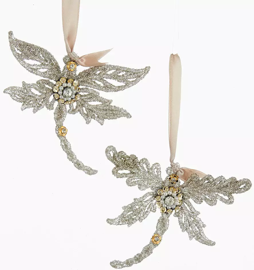 Bring glamour to your holiday decorating with these jeweled dragonfly ornaments embellished with glass glitter.