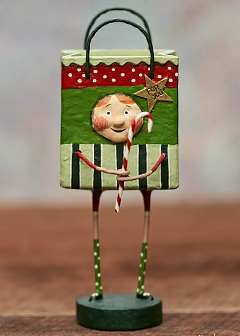 Bring home laughs this holiday season with Davey’s Gift Bag Figurine designed by artist Lori Mitchell.