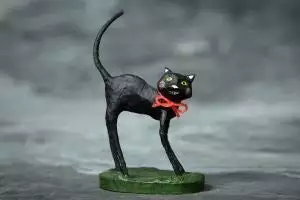 Give your Lori Mitchell Halloween figures a magical sidekick with this sassy black cat figurine.
