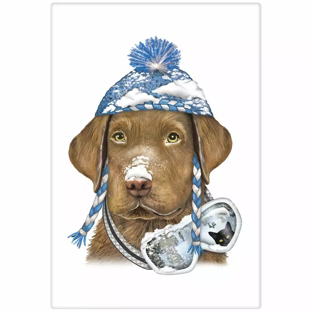 Keep your kitchen tidy in style with this 100% cotton Snow Buddy Chocolate Lab Flour Sack Towel. Makes a great host or hostess too!