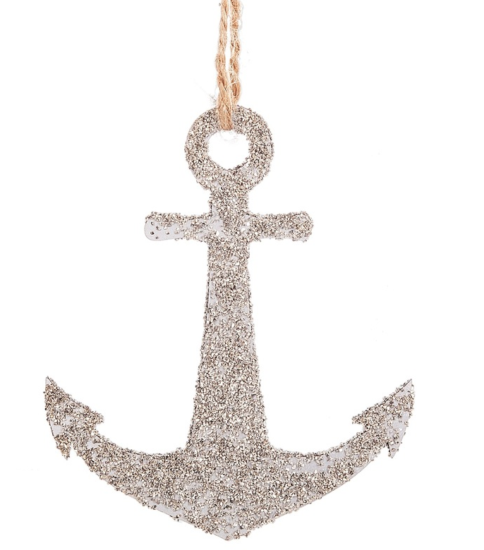 Bring a nautical vibe to your Christmas decorating with this glass Glittered Anchor Silhouette Ornament