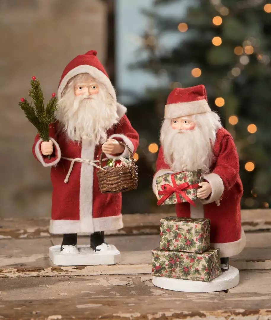 Give your Christmas decor an old fashioned feel with these Vintage Santa Claus figures by Bethany Lowe.
