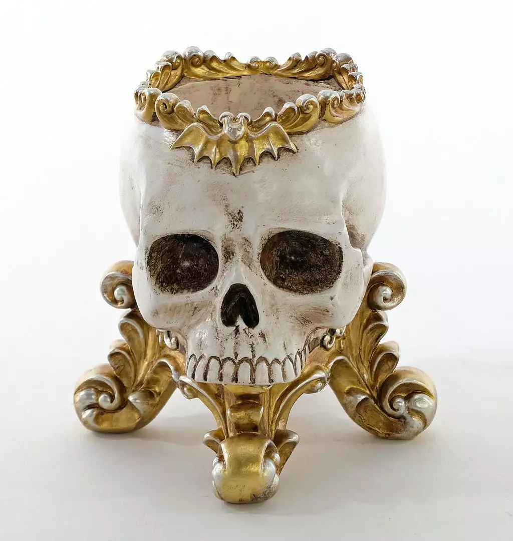 Create an eerie scene with this spooky Skull Footed Bowl by Katherine’s Collection.