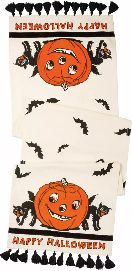 Get your home Halloween ready in a snap with Retro Halloween Table runner with vintage-inspired graphics.