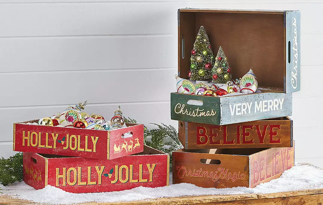 | Choose Crates: | Holly Jolly Red Crates Set of 2, Very Merry Christmas Green Crates Set of 2, Believe Natural Crates Set of 2 |