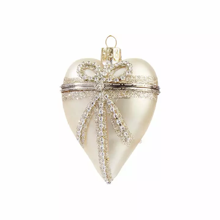 Give the gift of love this year with this lovely heart shaped box ornament.