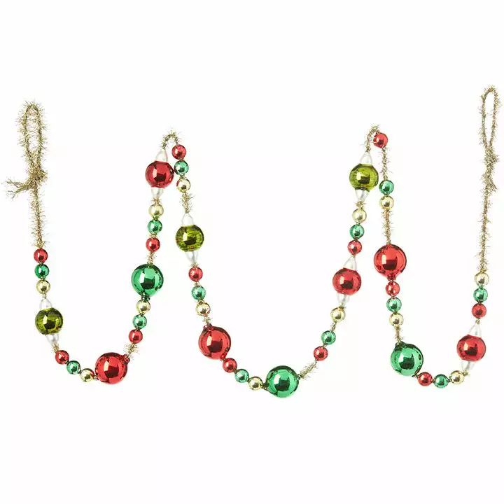 This Christmas Ball Garland with Gold Tinsel is sure to add a festive touch to your Christmas decorating!
