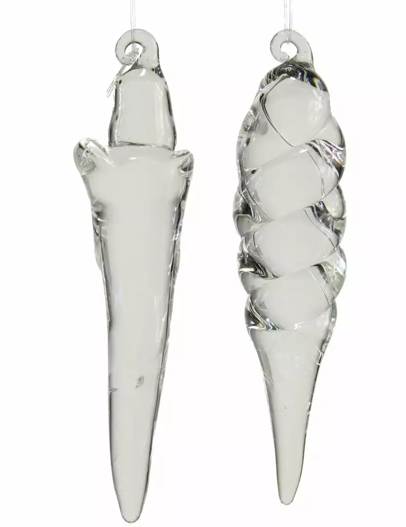 Transform your Christmas decorating into a winter wonderland with free-form solid glass icicle ornaments.