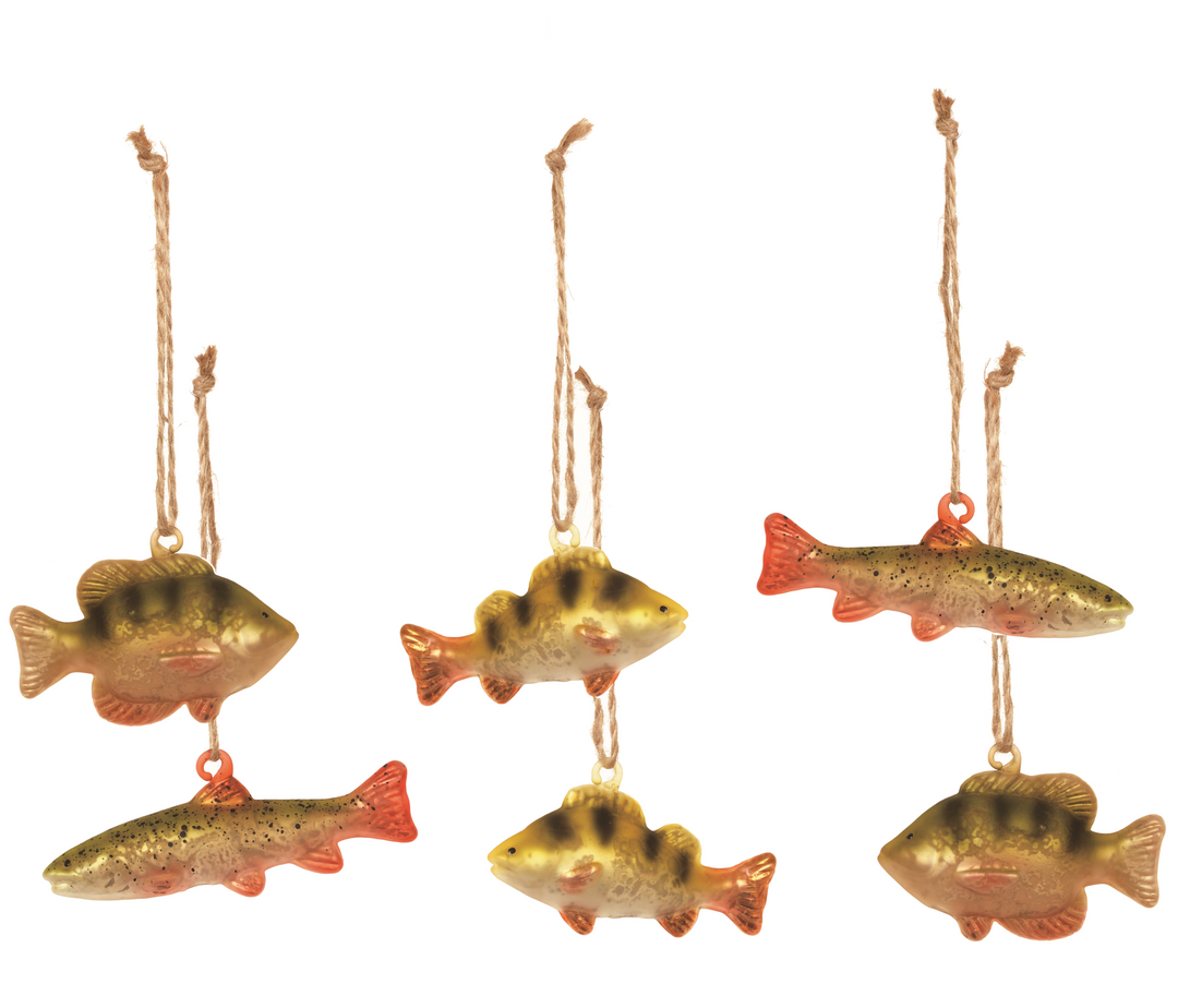 Celebrate the person in your life that loves to go fishing with these glass River Fish Ornaments on your Christmas tree.