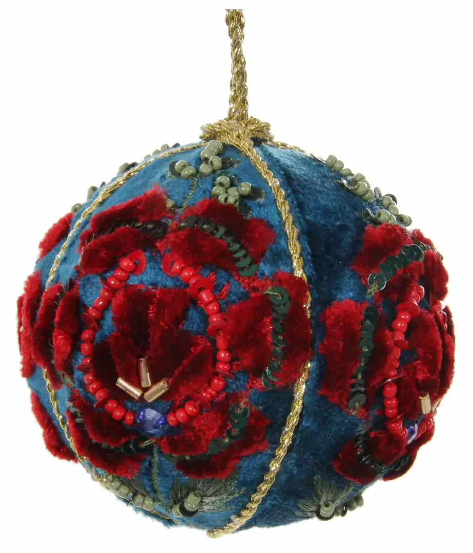 Bring an elegant feel to you Christmas decorating with this highly detailed Victorian Velvet Rose Ball Ornament.