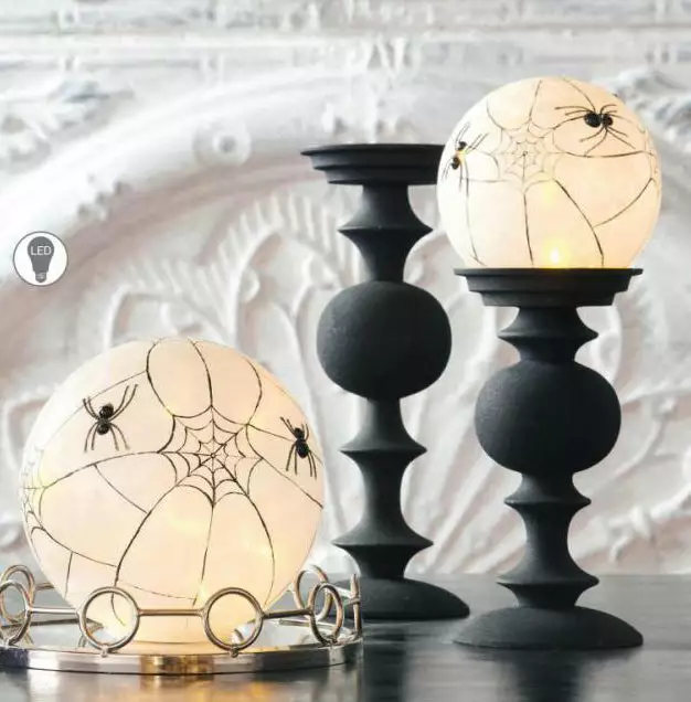 Set the mood with these illuminated spooky spider web globes.