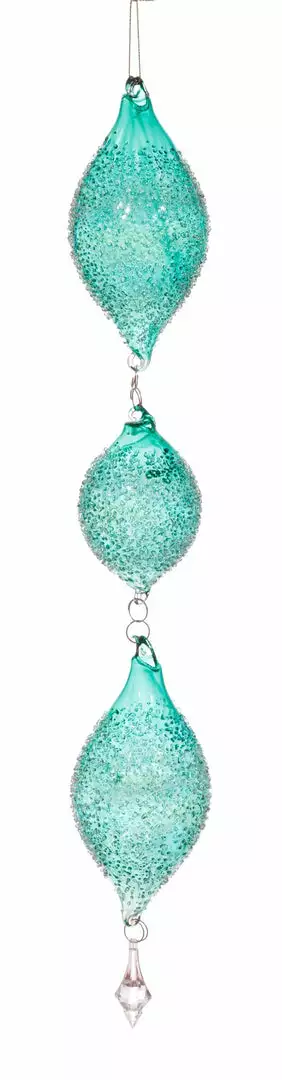 Add interest to your Christmas Decorating with this light turquoise beaded art glass teardrop finial.