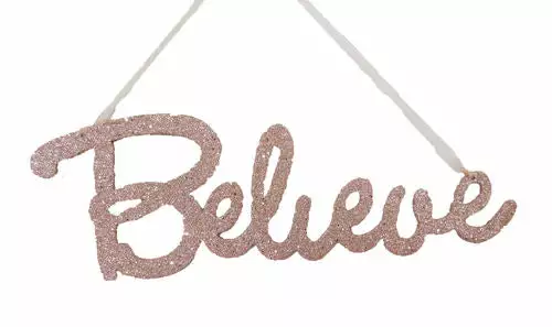 Bring chic, feminine style to your decor and gift-giving with this Glittered Rose Gold Believe Ornament.