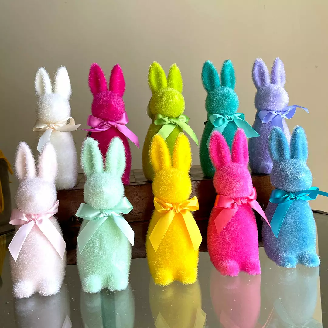 Hop, hop, hop! Say, “Happy Easter” with these fun Pop of Color Flocked Bunny Rabbits, finished off with a satin ribbon.