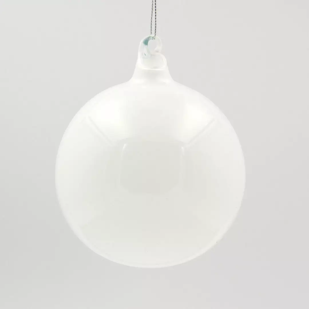 Personalize your holiday decor with these hand-blown Snow White Bubblegum Glass Ball Ornaments by designer Jim Marvin.